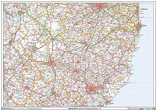 Ipswich - IP - postnummer väggkarta - papper