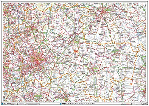 Nottingham - NG - postnummer väggkarta - papper
