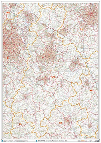 Coventry - CV - postnummer väggkarta - plastbelagd
