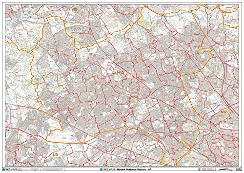 Harrow - HA - postnummer väggkarta - plastbelagd