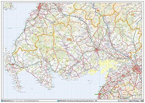 Dumfries & Galloway - DG - postnummer väggkarta - papper