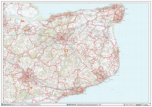 Canterbury - CT - postnummer väggkarta - papper