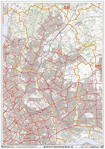 Ilford – IG – postnummer väggkarta – plastbelagd