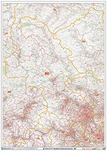 Bradford - BD - postnummer väggkarta - papper