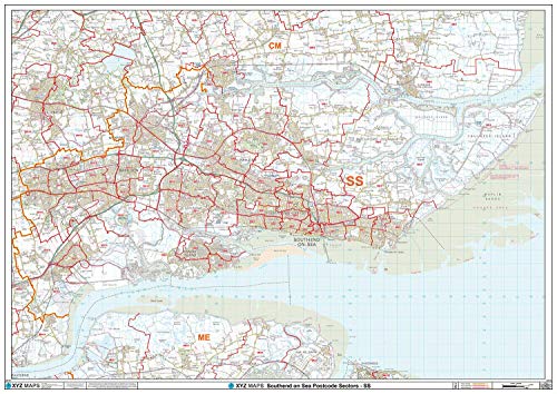 Southend on Sea - SS - postnummer väggkarta - papper