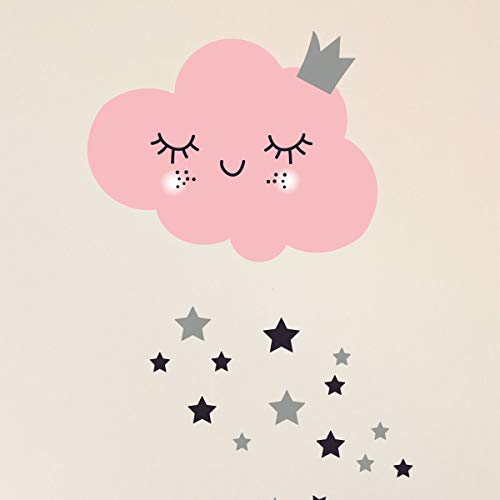 Väggklistermärken för barn - dekoration av babyrum - väggklistermärken för barn - förtrollande moln och 25 stjärnor - väggklistermärken för flickor - H30x L40 cm