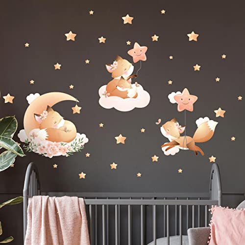 Väggklistermärken för barn - dekoration av barnkammaren - väggdekal för barn - stjärnfox väggdekal - H60 x L90 cm