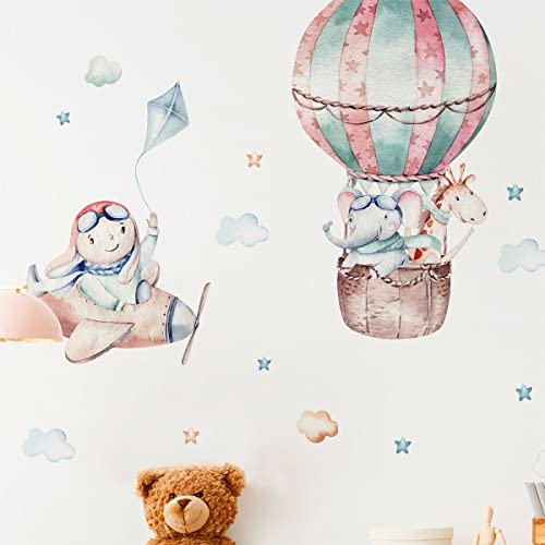 Väggklistermärken för barn - dekoration av barnkammaren - Väggklistermärke för väggballong och djurpiloter - H90 x L60 cm