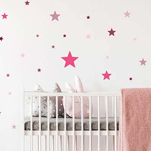 Väggklistermärken för barn - dekoration av babyrum - väggklistermärken för barn - väggklistermärken 50 rosa stjärnor - väggklistermärken för flickor - H30x L40 cm