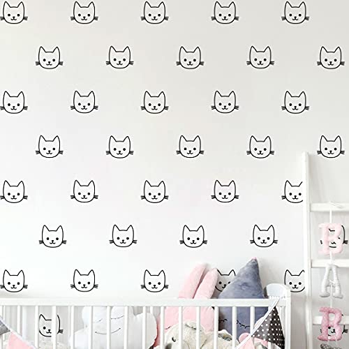 60 väggklistermärken katthuvud - väggklistermärken för barn - väggklistermärken för barnrum - 40 x 40 cm - svart