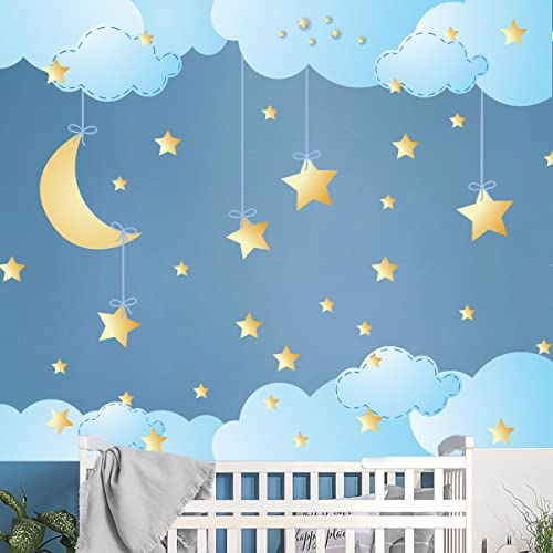 Väggklistermärken för barn - dekoration av barnkammaren - väggklistermärken för stjärnor och moln på himlen - H60 x L90 cm
