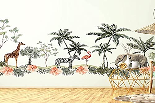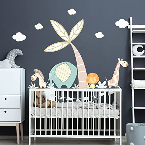 Väggklistermärken för barn, dekoration, babyrum, väggdekal, barnrum, väggdekal, skandinaviska djur och magiska palmer, H60 x B 90 cm