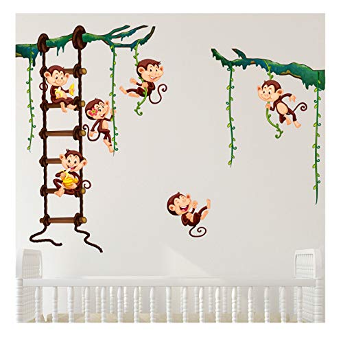 Klistermärken för barn | klistermärken klistermärken apor i djungeln - väggdekoration barnrum - väggklistermärken barn apa väggklistermärken | 60 x 70 cm
