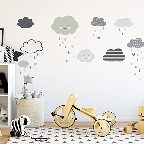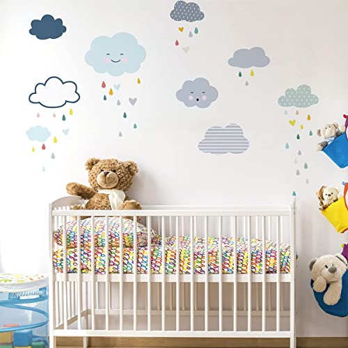 Väggklistermärken för barn - dekoration av babyrum - väggklistermärken för barn - skandinavisk väggdekal - skandinaviska moln och kärleksregn - H180 x L120 cm