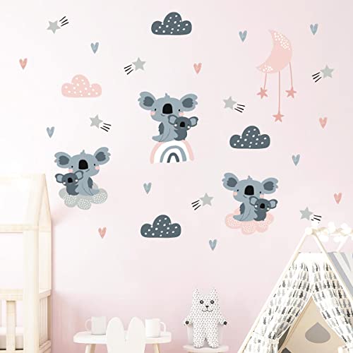 Väggklistermärken för barn - dekoration av babyrum - väggklistermärken för barn - skandinavisk väggklistermärke - koalas i stjärnor - H120 x L180 cm