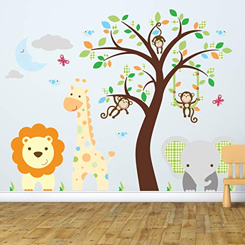 Väggklistermärken för barn - barnkammardekoration - väggklistermärken för barn - väggklistermärken för djungeldjur - barn väggklistermärke - H60x L80 cm