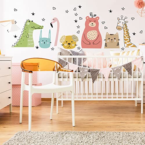 Väggklistermärken för barn - dekoration av barnkammaren - väggdekal för barn - djur med stjärnfiske - H60 x L90 cm