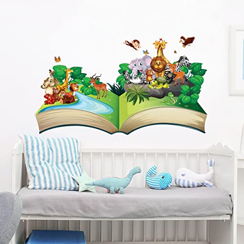 Väggklistermärken för barn - dekoration av barnkammaren - väggklistermärke för barn - djurbok - H50 x L90 cm