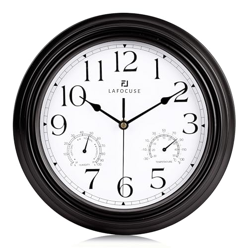 Lafocuse Tyst Retro 30cm Grå Väggklocka med Termometer och Hygrometer utan Tickande Väggur Dekoration Batteridriven för Kontor Kök Sovrum Vardagsrum