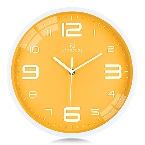 Lafocuse Tyst Modern 30cm Rund Barn Gul Väggklocka med Stora 3D-siffror utan Tickande Väggur Dekoration Batteridriven för Barnrum Kök Sovrum Vardagsrum