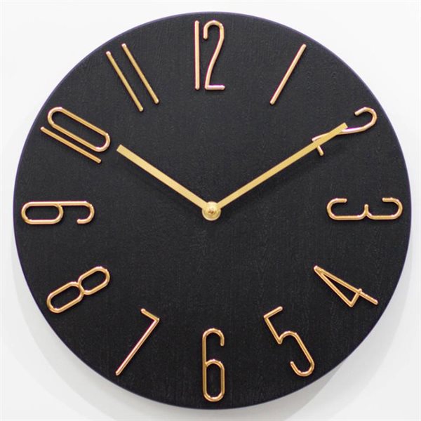 Minimalistisk Analog Väggklocka 30cm - Svart/guld