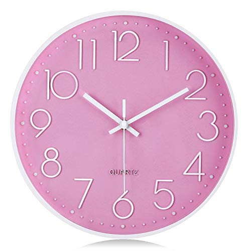 Lafocuse Tyst Modern 30cm Barn Flickor Rosa Väggklocka med 3D Arabiska Siffror utan Tickande Väggur Dekoration för Babyrum Barnrum Sovrum Vardagsrum