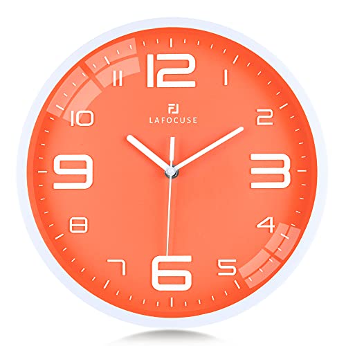 Lafocuse Tyst Modern 30cm Rund Orange Väggklocka med Stora 3D-siffror utan Tickande Väggur Dekoration Batteridriven för Barnrum Kök Sovrum Vardagsrum