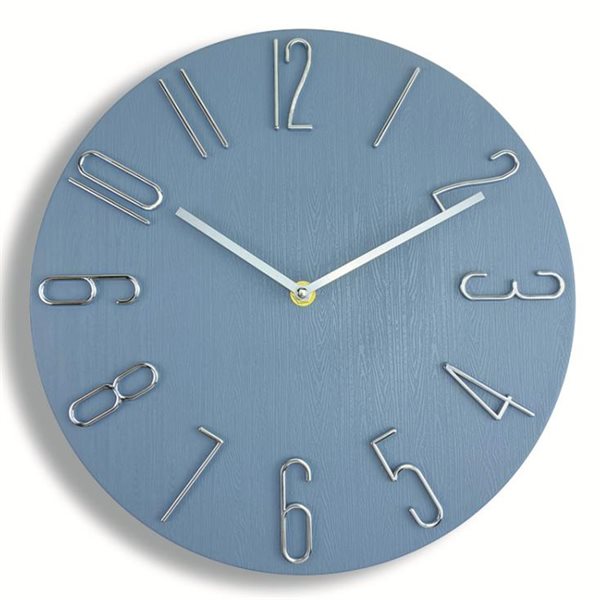 Lafocuse Tyst Modern 30cm Barn Blå Väggklocka med 3D Arabiska Siffror utan Tickande Väggur Dekoration Batteridriven för Kontor Kök Sovrum Vardagsrum