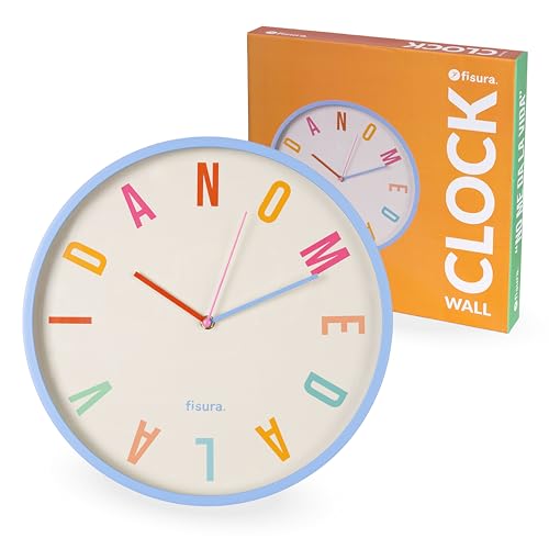 Fisura – Modern väggklocka "no me da la vida". Ljudlös modell med en diameter på 35 cm i blått. Idealisk för kontor, vardagsrum eller sovrum. Minimalistisk design. Drivs av 1 AA-batterier (ingår ej).