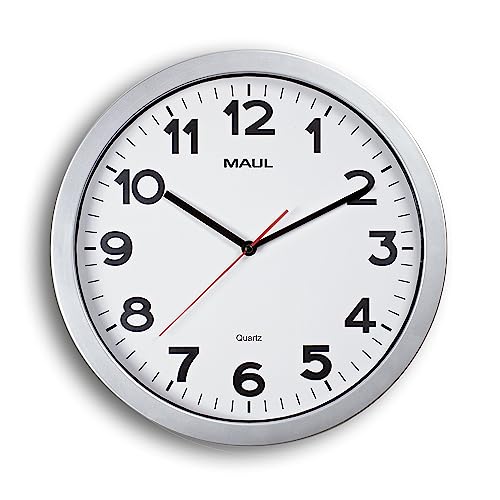Maul Väggklocka Maulstep Ø 35 cm, Kvartsklocka Med Automatisk Tidsinställning, Perfekt För Vardagsrum, Sovrum, Kök, Arbetsrum Och Kontor, Bra Läsbarhet För Stora Rum, Silver