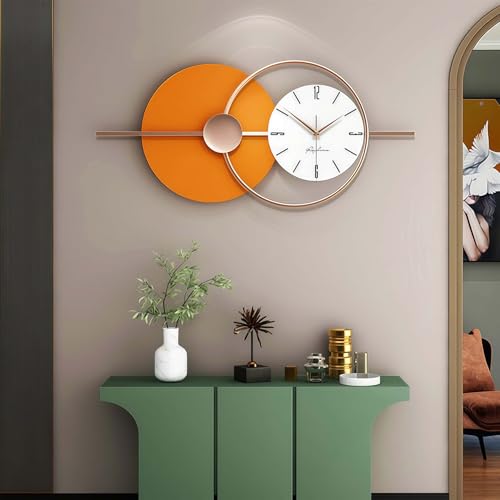 GERHWASH Stor modern design tyst väggklocka (80 x 35 cm) – XXL metallkombination väggklocka | elegant dekoration för vardagsrum och kontor i orange/vit