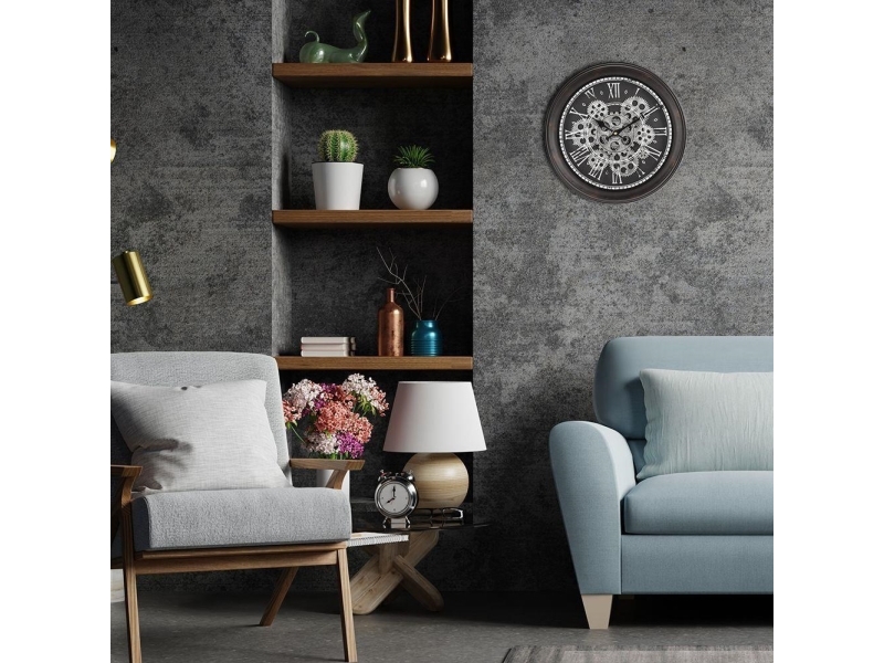 Vilde Väggklocka Pendel Industriell Rund Svart Silver Rörlig Kugghjulsmekanism Loft 35 Cm