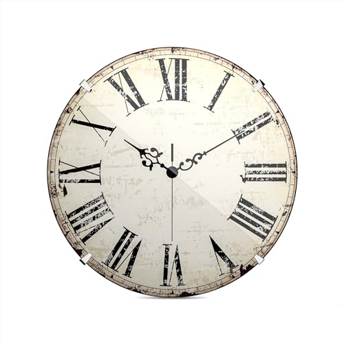 Mebus Vintage väggklocka med romerska siffror I utan tickande ljud tack vare exakt kvartsurverk I lock av kupolglas I diameter: 35 cm stor, antik