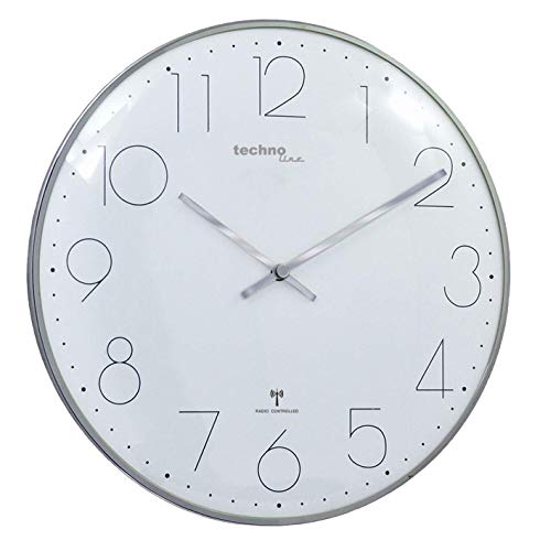 Technoline modern, filigran radiostyrd väggklocka med böjd glaskåpa och en mycket tydlig urtavla, från Technoline, Ø 35 cm, krom - optik, WT 8235 krom, silver:, 35 x 2,5 x 35 cm
