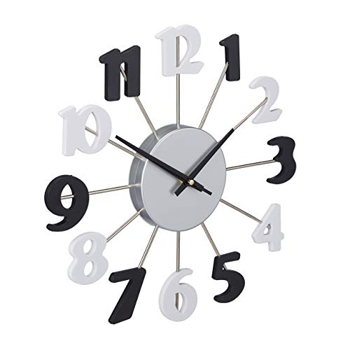 Relaxdays Väggklocka, ramlös, med sekundvisare, analog klocka för kök, vardagsrum, sovrum, Ø 35 cm, svart-vit, 1 st