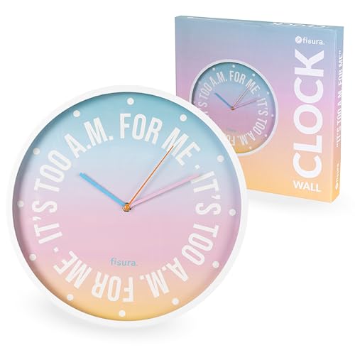 Fisura – Trendig väggklocka "it’s too a.m". Tystgående klocka med en diameter på 35 cm och snygg färgövergång. Passar perfekt i kök, sovrum eller arbetsrum. Kräver 1 AA-batterier (ingår ej).