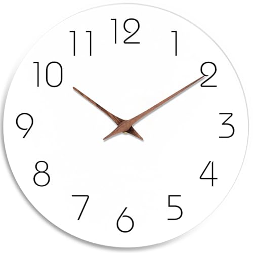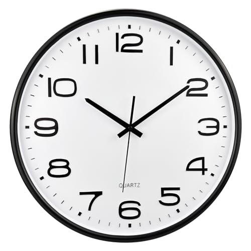 Plumeet Extra stor väggklocka, 40,6 cm tickar inte tyst kvarts svarta väggklockor, batteridriven, dekorativ skolklocka för hemmakontor (vit)