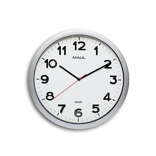 Maul Väggklocka Maulstep Ø 40 cm, Kvartsklocka Med Automatisk Tidsinställning, Perfekt För Vardagsrum, Sovrum, Kök, Arbetsrum Och Kontor, Bra Läsbarhet För Stora Rum, Silver