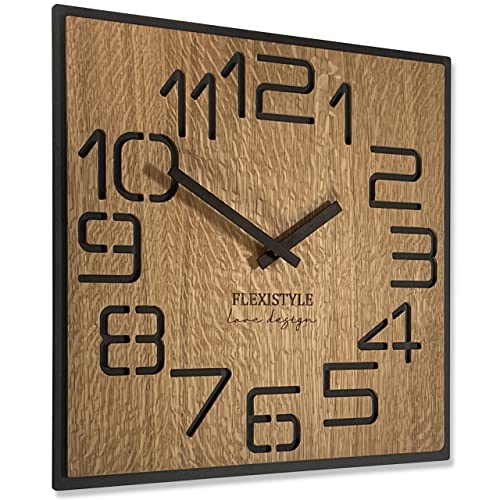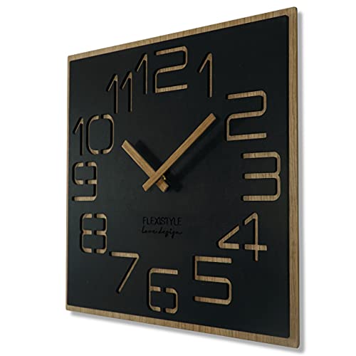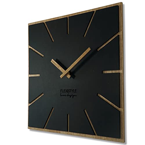 FLEXISTYLE Modern stor väggklocka kvadratisk trä exakt ECO, tystnad, vardagsrum, sovrum, tillverkad i EU (svart, 40 cm)