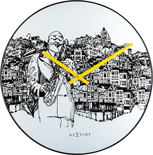 NeXtime Sax City väggklocka, glas, vit, 40 cm