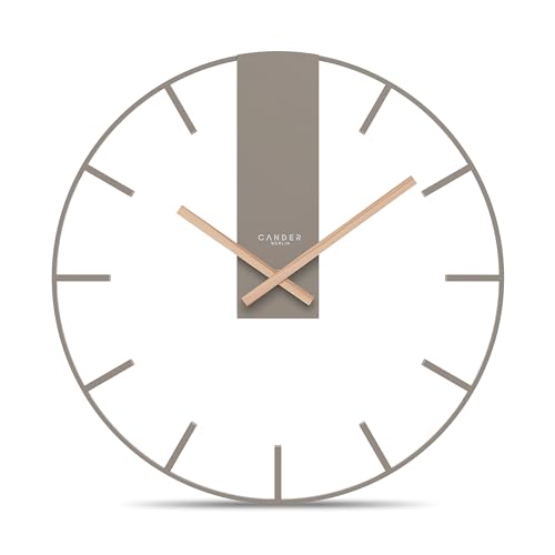 Cander Berlin Jenson XXL väggklocka tyst 40 cm metall trävisare utan tickande stor modern varm grå vardagsrum kök vintage