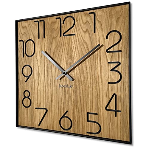 FLEXISTYLE Modern fyrkantig stor väggklocka. ECO diameter 50 cm, tystnad, träutseende, ek, vardagsrum, sovrum, tillverkad i EU (digitala 40 cm)