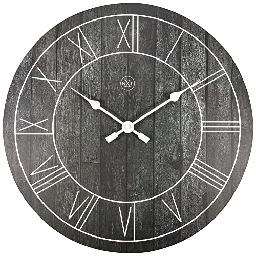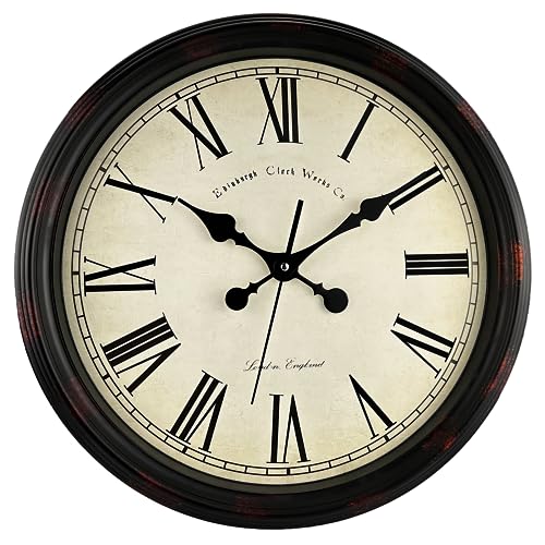 DIYZON Rund klassisk väggklocka tyst tickar ej 40 cm extra stor kvalitet kvarts vintage klocka, stora siffror Rom retro klocka batteridrift, lätt att läsa för hem kök vardagsrum - restaurang