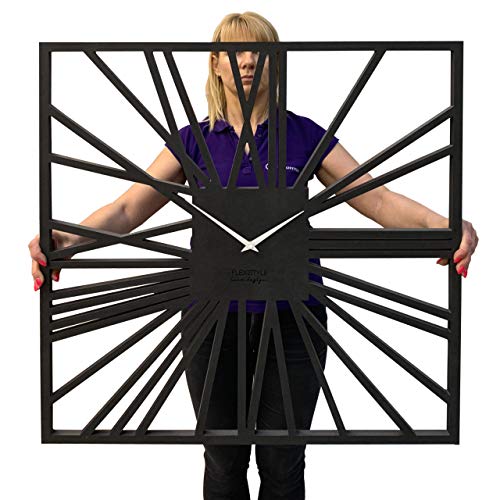 FLEXISTYLE Stor EKO väggklocka utan tickande ljud Loft Grande svart 80 cm! (tjocklek 19 mm), vardagsrum, sovrum, tillverkad i EU