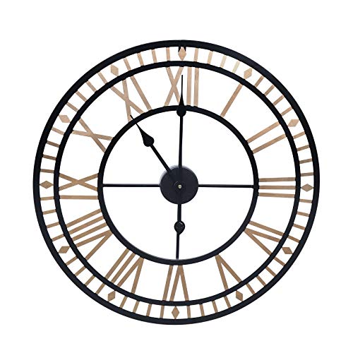 Väggklocka, 80 cm modern metallklocka romerska siffror kvartsklocka vintage klockor för vardagsrum sovrum köksdekoration (utan batteri)