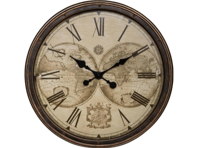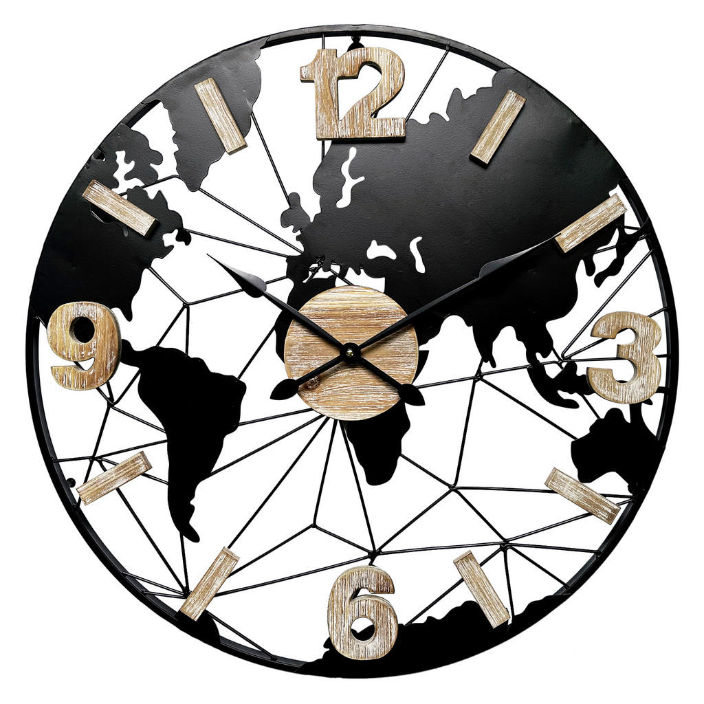 Atmosphera Väggklocka Med Världskarta Tomy, Ø 51 Cm, Brun