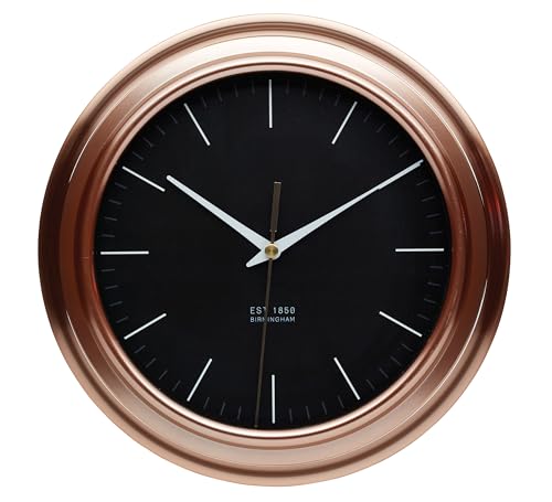 Brun kvarts väggklocka i svart med tyst rörelse, klassisk väggklocka med en diameter på 33 cm, BC17B