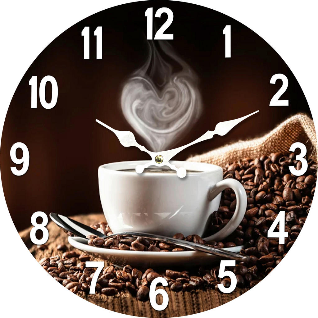 TASSE Time for Coffee (tid för kaffe) modern kök väggklocka, brun, 3D romersk, väggklocka deko