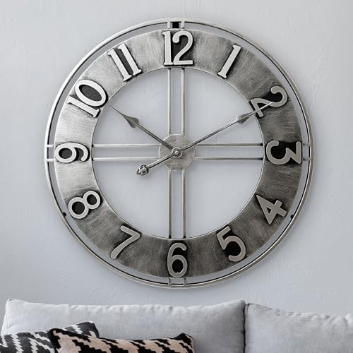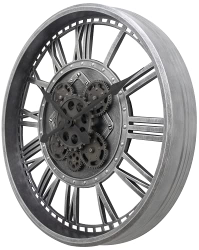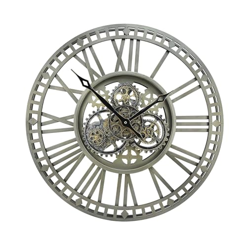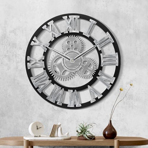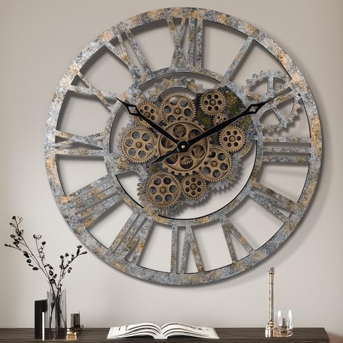 DaoWhisper stor väggklocka med riktiga rörliga växlar, överdimensionerad industriell steampunk, dekorativ retro, romerska siffror, skelett, tysta väggklockor för vardagsrum, kök, kontor, dekor