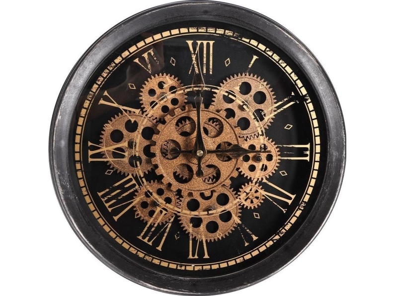 Vilde Väggklocka Hängande Industriell Rund Rörlig Kugghjulsmekanism Loft Svart Guld 35 Cm